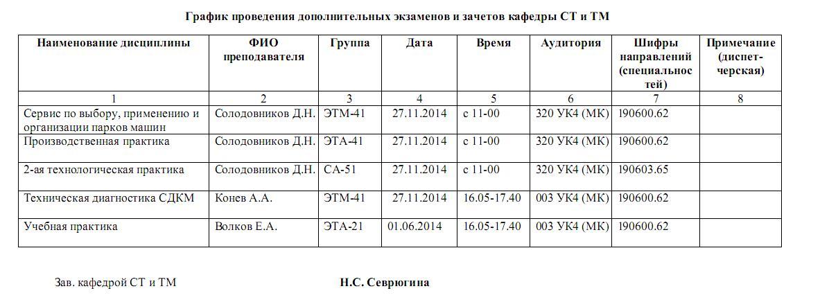 График проведения дополнительных экзаменов и зачетов кафедры СТ и ТМ